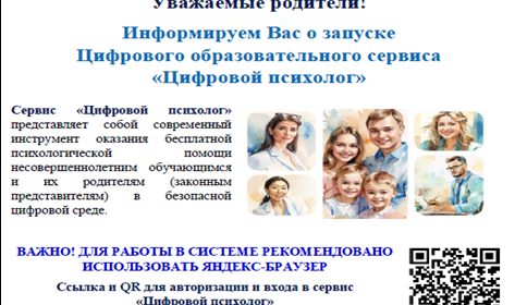 ГБУ ЦППМСП «Бирюза» м.р. Сергиевский запустил сервис психологической поддержки обучающихся — «Цифровой психолог». Что это такое? Это современный онлайн-сервис который позволяет консультироваться с профессиональными психологами, обсуждать волнующие вопросы в безопасной обстановке. Темы для обсуждения: — школьные проблемы и успеваемость; — отношения со сверстникам и близкими людьми; — самоопределение и выбор пути; — вопросы воспитания […]