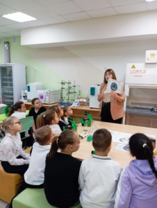 В ходе экскурсии ребята познакомились с умными приборами и смогли познакомиться с аппаратами и приборами, а также узнали, как ведут свои научные наблюдения и опыты старшеклассники. Первоклассники попробовали себя в роли ученых. Они измеряли количество воды в пробирках, в микроскоп разглядывали удивительный мир микроорганизмов.