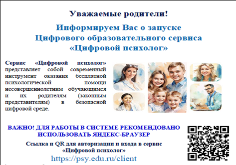 ГБУ ЦППМСП «Бирюза» м.р. Сергиевский запустил сервис психологической поддержки обучающихся — «Цифровой психолог». Что это такое? Это современный онлайн-сервис который позволяет консультироваться с профессиональными психологами, обсуждать волнующие вопросы в безопасной обстановке. Темы для обсуждения: — школьные проблемы и успеваемость; — отношения со сверстникам и близкими людьми; — самоопределение и выбор пути; — вопросы воспитания […]